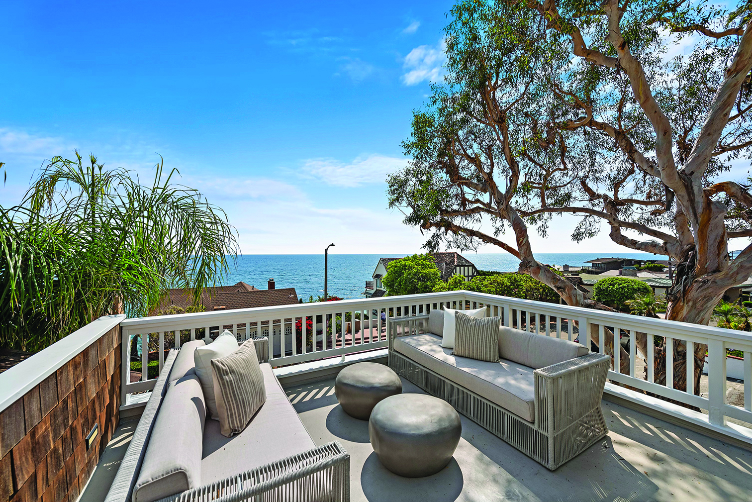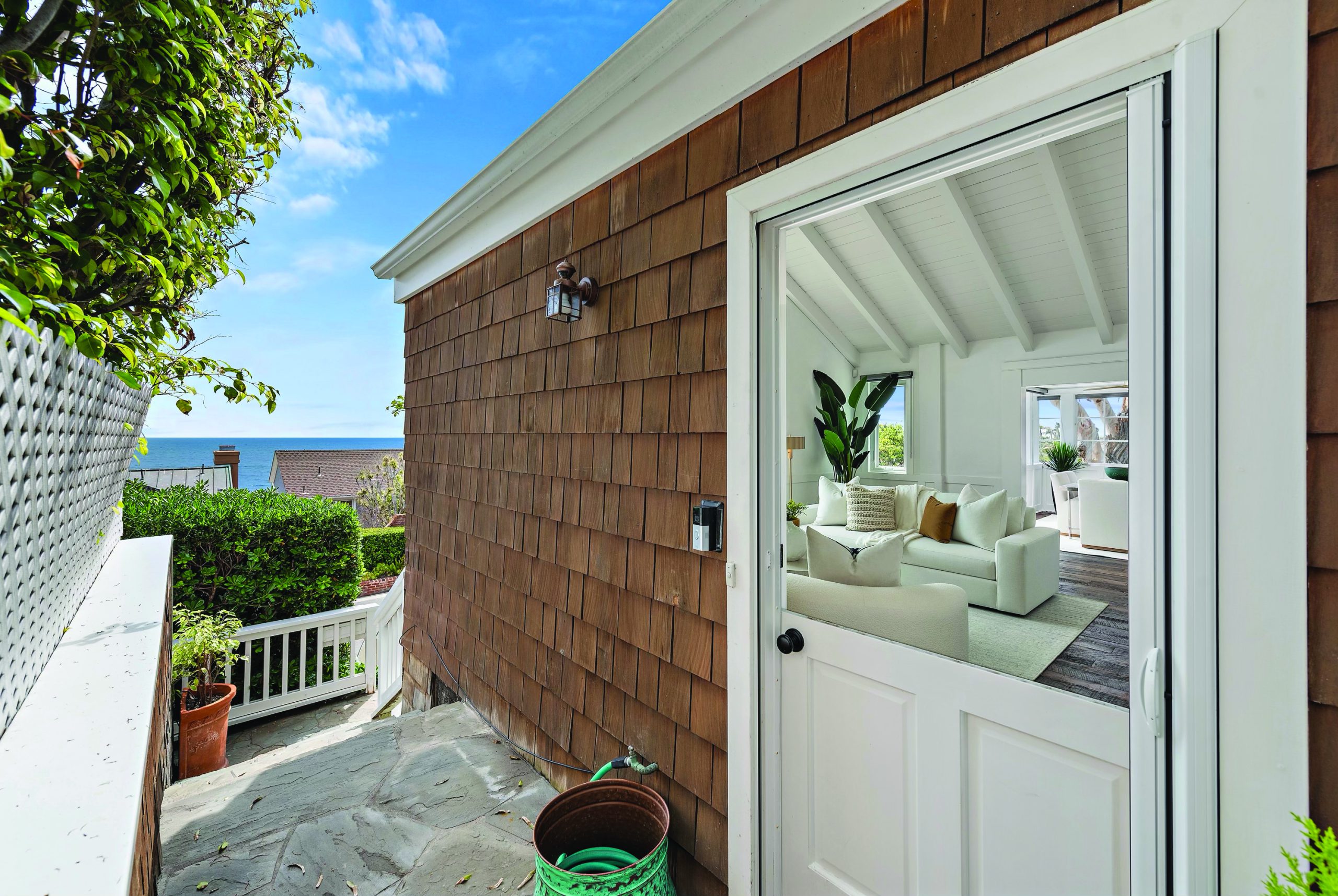 Nestled on a corner lot adjacent to the famed Betty Davis estate, this completely renovated home features hardwood flooring, cathedral vaulted ceilings, oversized windows, and French doors. The main level is designed for entertaining and has a gourmet kitchen equipped with stainless steel appliances and plenty of storage. The dining area opens up to the adjoining balcony, which also presents captivating sunset vistas. A spacious formal living room, with an adjacent fireside den, features panoramic windows that frame the endless beauty of the ocean. There are two bedrooms and two bathrooms on the main level and a primary suite on the top level that offers breathtaking ocean and Catalina views, a walk-in closet, En-suite bath, a fireplace and a private viewing deck. The lowest level offers an expansive and versatile space that can function as a family room, flex room, or second suite. The lower level also has a full bathroom, a spacious bonus room, and a convenient laundry room and a wet bar. The lower level opens up to a larger patio with easy access to beach.