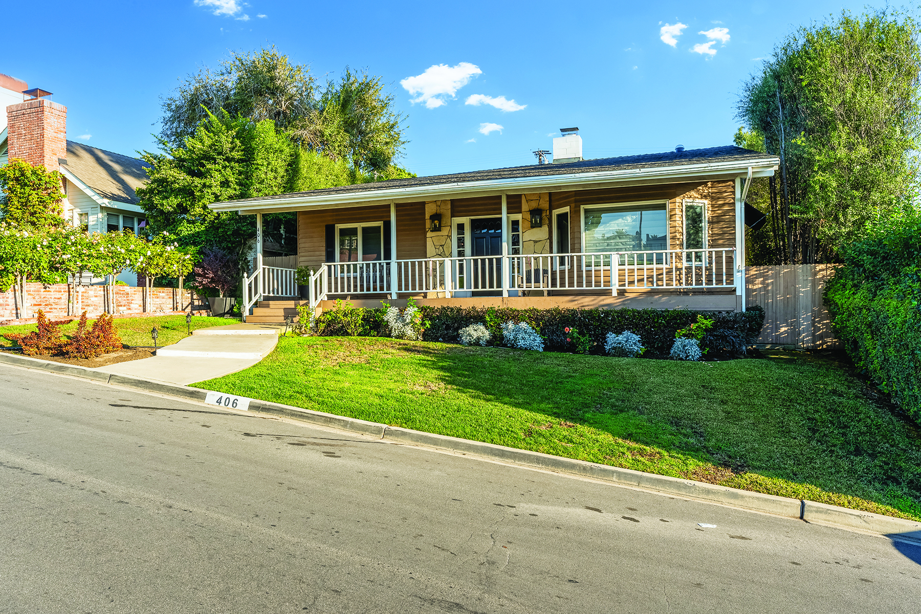 The nicely upgraded main residence is approximately 1,700 square feet and features a sweeping view of Cliff Drive Park from the living room, dining room, and covered front porch. Inside, the charm is evident with vaulted ceilings, paneled walls, and a wood-burning fireplace. Two sliding glass doors off of the rear of the main house open up to a grassy rear yard and access to a ground-level detached bedroom and bathroom as well as a separate studio above the garage with kitchenette, bathroom, and laundry. Vaulted ceilings, a spacious private deck, and a wood-burning fireplace complement views of Cliff Drive Park and a peekaboo view of the ocean. The configuration of the property includes a front house, which is a single level two bedroom, two bathroom standalone residence. A detached bedroom (or office) and bathroom with closet sits adjacent but attached to a two car garage. Above the garage is a large studio apartment with kitchen and private laundry.