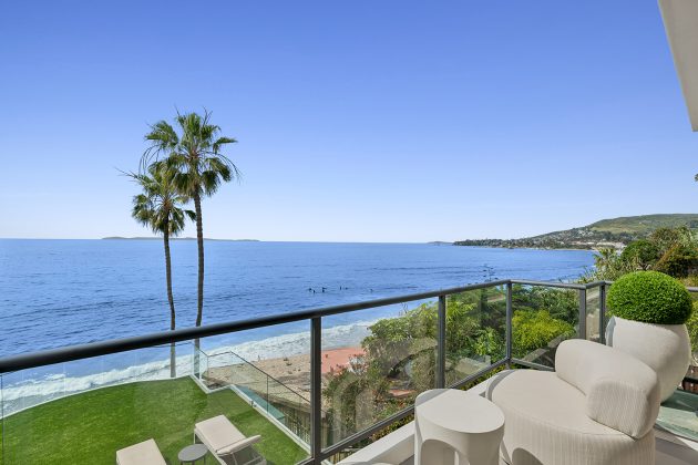 Experience elevated coastal living in this rare oceanfront property with direct beach access, overlooking breaking waves, Catalina Island, lights, and the Pacific Ocean from its premier setting within Laguna Beach Village. Floor-to-ceiling windows capture sweeping ocean vistas and natural light throughout the main living areas, which open to multiple private decks. The property consists of three separate residences, each substantial in size with private beach access, outdoor space and individual entrances. The top residence is approximately 1,700 square feet with two bedrooms and two-and-one-half bathrooms. The open floor plan includes a flexible room that may function as a bedroom or an office. The primary suite enjoys ocean views from bed and opens to private balconies overlooking the ocean. The middle residence is the largest of the three and features a spacious design for comfortable everyday living and entertaining. Encompassing approximately 2,613 square feet with three bedrooms and three bathrooms, the two-level layout offers a seamless open floor plan oriented toward the coastline. A secondary living room enjoys expansive coastal views, creating an inviting space for refined living. The lower residence offers approximately 1,737 square feet with two bedrooms and two bathrooms, an additional living room provides a comfortable gathering space with a built-in wet bar, access to a spacious deck, and direct access to the sand. A gated entry, multiple garages, and a private driveway provide ample parking.